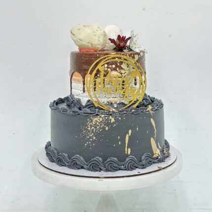 کیک ویترینی تولد با تم صورتی و تزئین شکلات