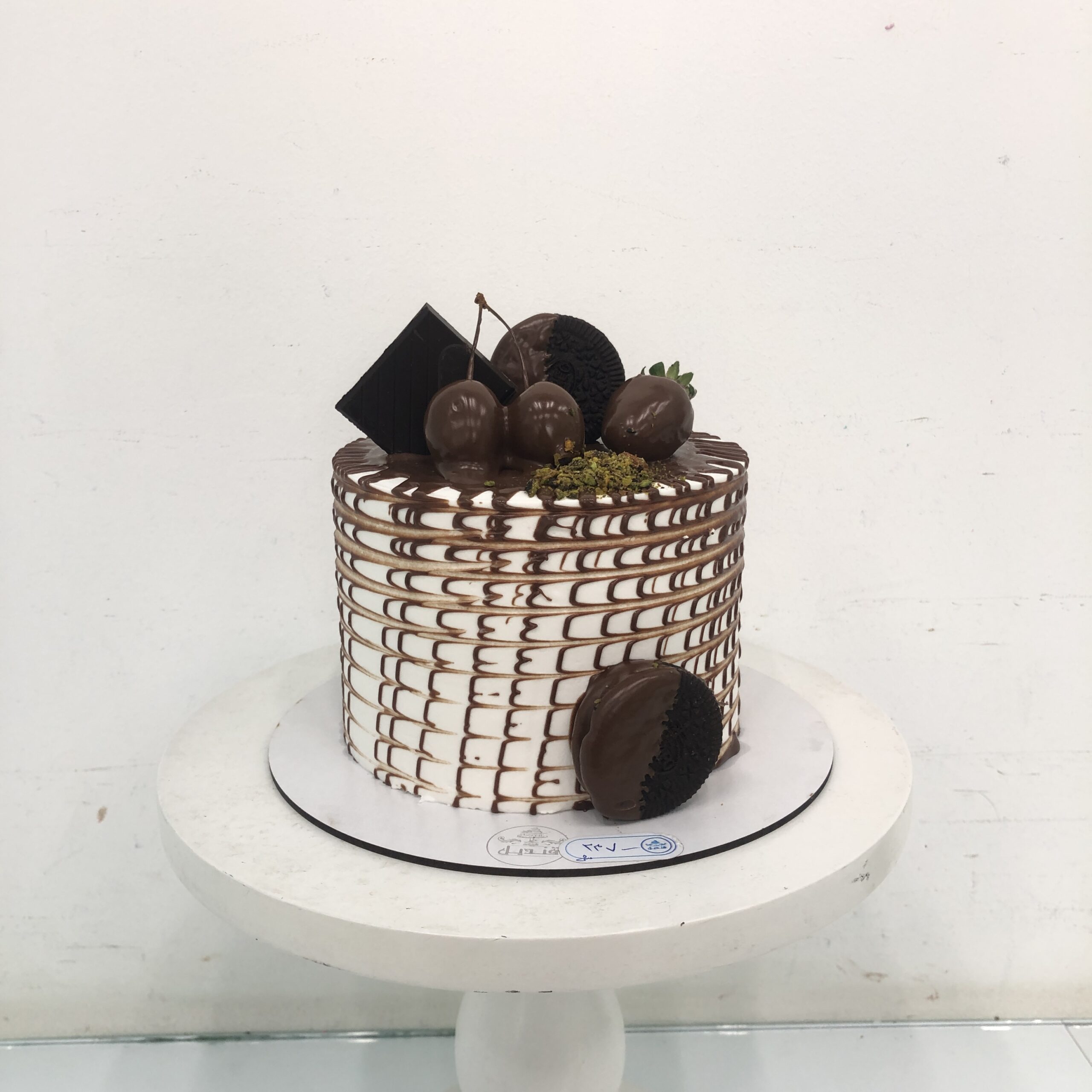 کیک وانیلی با تزئینات شکلات